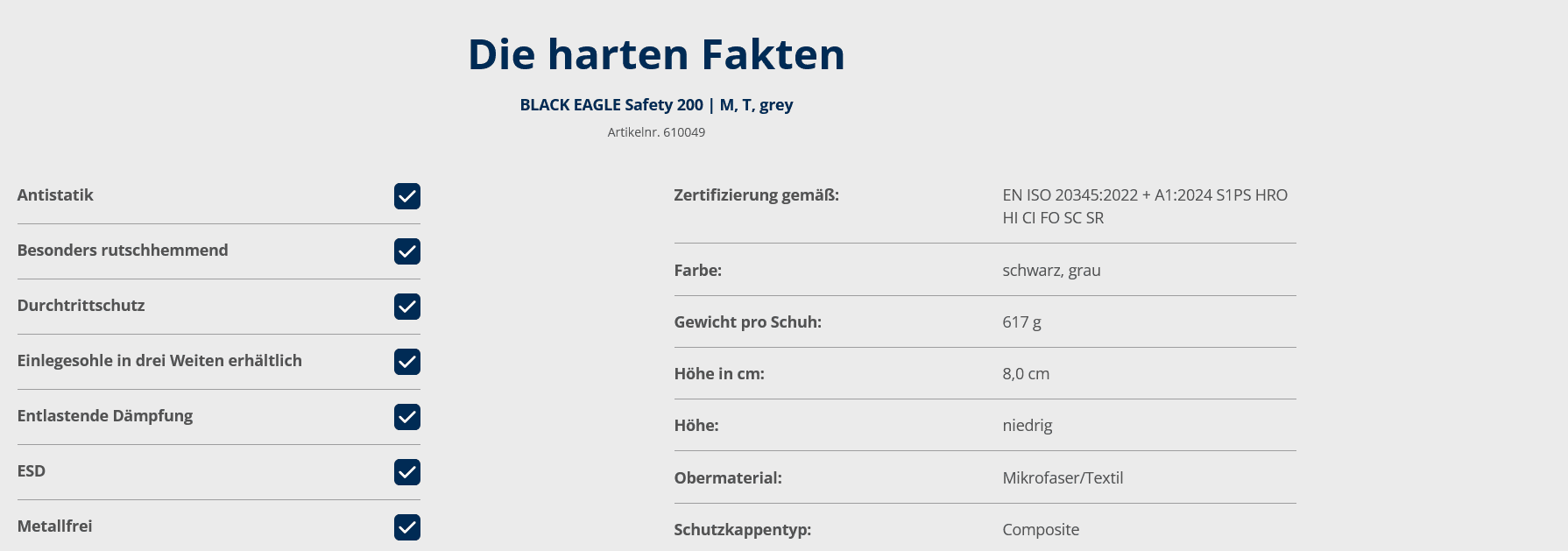 HAIX BLACK EAGLE Safety 200 low M/T grey S1PS – Art.-Nr. 610049
