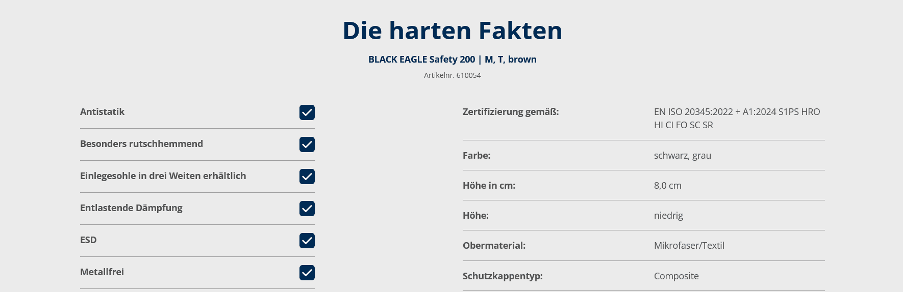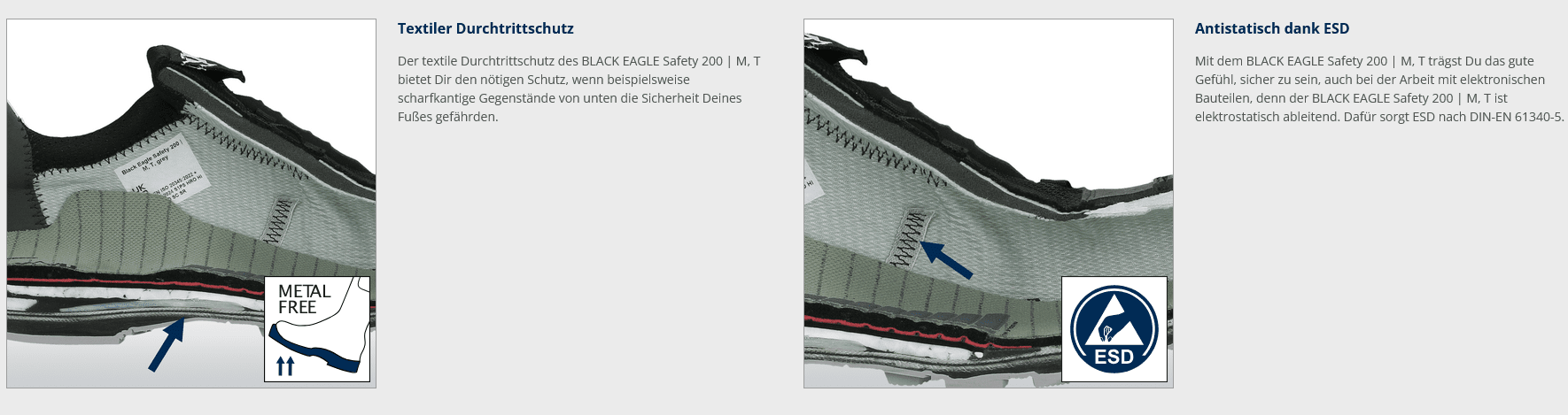 Der HAIX Black Eagle Safety 200 M T brown ist ein leichter und atmungsaktiver S1PS Sicherheitsschuh für den Innenbereich und warme Arbeitsumgebungen. Die Kombination aus Mikrofaser und Textil sorgt für hohe Atmungsaktivität und Strapazierfähigkeit. Metallfreier Durchtrittschutz, Composite-Zehenschutzkappe, ESD-Ausstattung sowie eine rutschhemmende Laufsohle bieten zuverlässigen Schutz und hohen Tragekomfort im Arbeitsalltag.