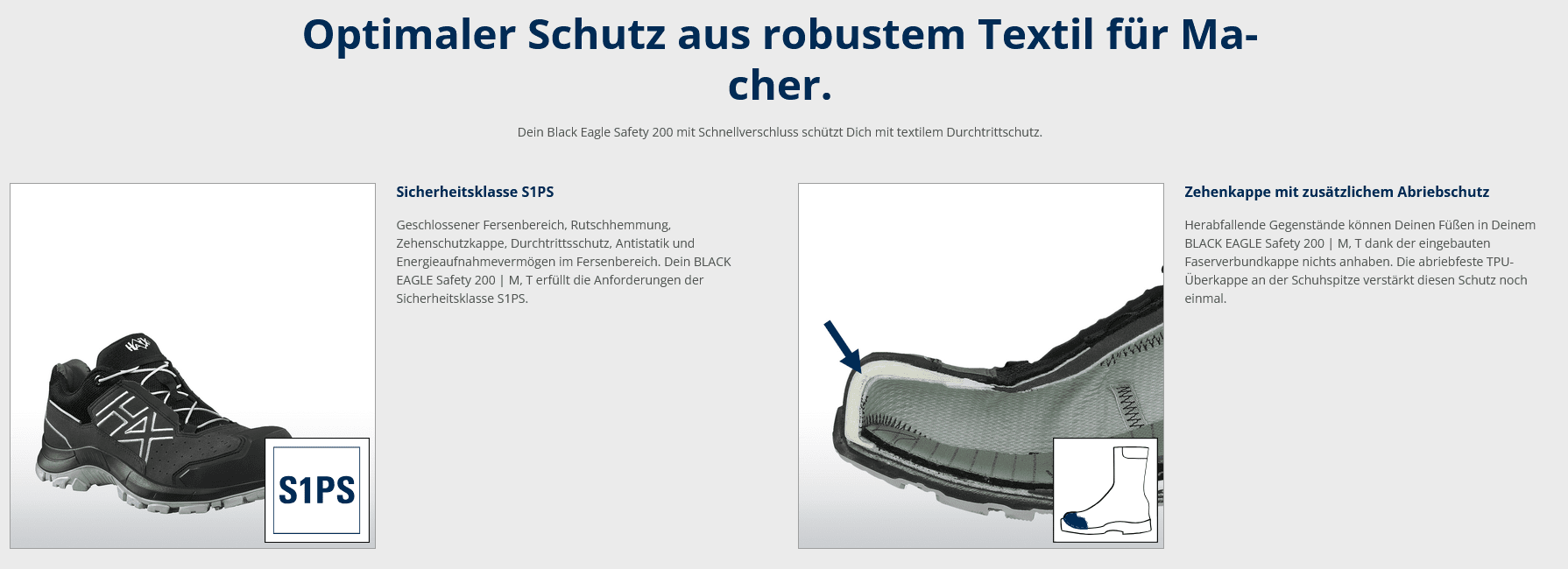 Der HAIX BLACK EAGLE Safety 200 ist ein ultraleichter, metallfreier Sicherheitsschuh der Klasse S1PS für den anspruchsvollen Arbeitsalltag. Die atmungsaktive Mikrofaser-Textil-Kombination sorgt für ein angenehmes Fußklima, während der flexible, metallfreie Durchtrittschutz und die glasfaserverstärkte Zehenschutzkappe zuverlässige Sicherheit bieten. Dank XLR8® Technologie, HAIX CO-System und Smart Lacing überzeugt der niedrige Sicherheitsschuh mit hoher Dynamik, optimaler Dämpfung und perfektem Halt – ideal für Workwear, Industrie und Logistik.